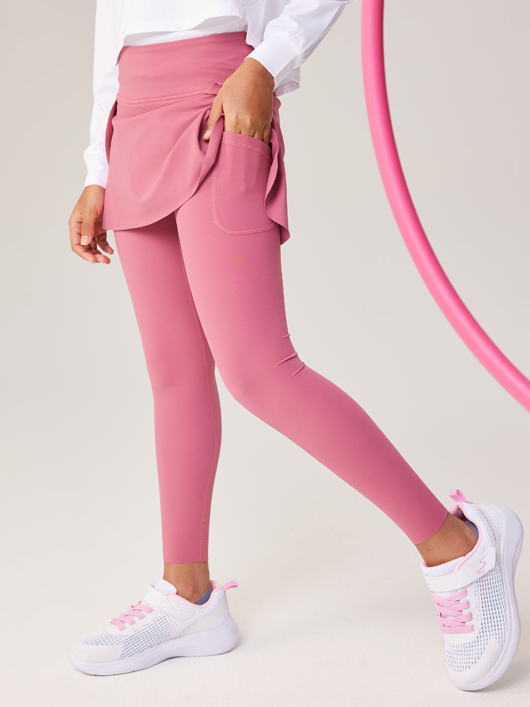 Split outer skirt attached to leggings designed for more movement freedom and fashion. Side pockets to expand storage volume. The length can be customized under an adult’s supervision by simply cutting off the unwanted length and the edge will not fray or fall apart.